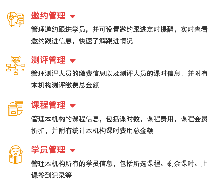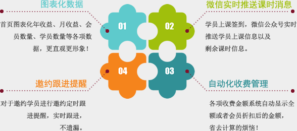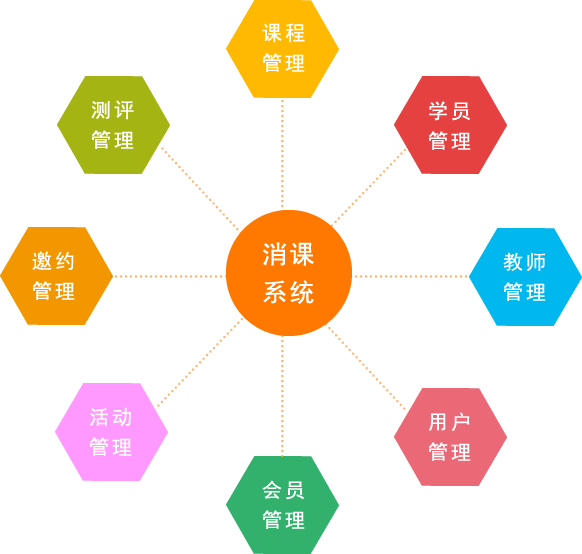 消课系统,是一款集课程管理、学员管理、会员管理、课时管理、收费管理于一体的线上管理系统,打造线上课程、学员一体化管理,微信实时推送课时信息。